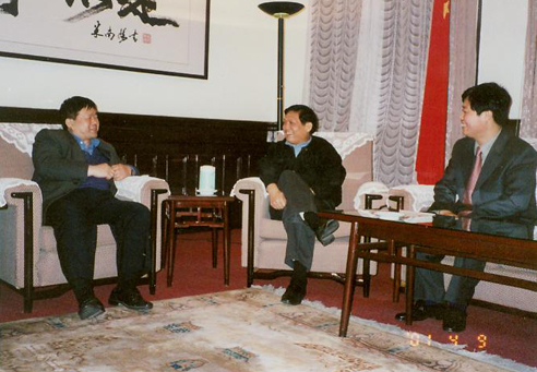 北京市市委书记、原武钢总经理刘淇(中)在北京接见兴达公司领导